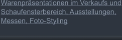 Herzlich WillkommenSchöne Dinge sind meine WeltSeit Anfang 2004 bin ich als selbstständige Schauwerbe- und Mediengestalterin tätig und habe seither in den verschiedensten Bereichen der Werbung meine Erfahrungen einbringen und sammeln dürfen.In enger Zusammenarbeit mit meinen Kunden und einem ausgewählten Team planen wir die dekorativen und gestalterischen Aufgaben des jeweiligen Projekts und organisieren/erstellen alle erforderlichen Dekorationsmittel und Requisiten, um die optimale und zeitgemäße Wirkung zu erzielen.